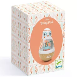 Een rammelaar ‘BabyBali’ van het Franse merk Djeco met verschillende houten dierenkopjes. Actief babyspeelgoed, dat kan rollen en vrolijk rammelt. In de twee transparantie delen zitten gekleurde balletjes, die de baby hoort en ziet als de rammelaar geschud wordt.