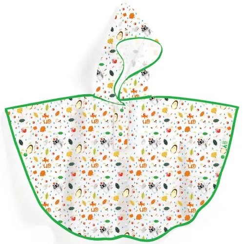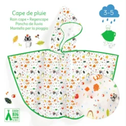 Altijd voorbereid op een plotselinge regenbui met deze vrolijke regencape ‘Cape de pluie – Sous-bois’ van het Franse merk Djeco.