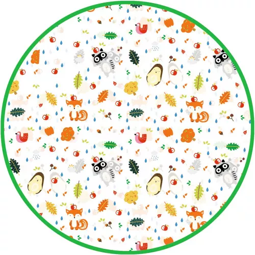 De transparante regencape heeft een capuchon en kleurrijke illustraties van vriendelijke bosvriendjes. Neem de transparante kinderregencape overal mee naartoe in de tas of rugzak.