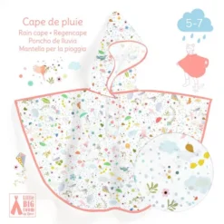 Kinderen gaan met plezier naar buiten als het regent met deze kleurrijke regencape ‘Cape de pluie – Petites Légeretés’ van het Franse merk Djeco.