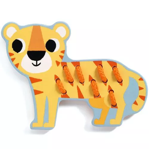 Leer rijgen met deze kleurrijke kaartenset ‘Lassanimo’ van het Franse merk Djeco. Een creatief klusje en speelgoed, wat spelenderwijs goed is voor de motoriek.