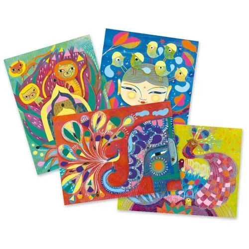 Tover de kleurrijke Indische figuren te voorschijn met deze waterverf schilderset ‘India’ uit de serie Gouaches, schilderen op nummer van het Franse merk Djeco.