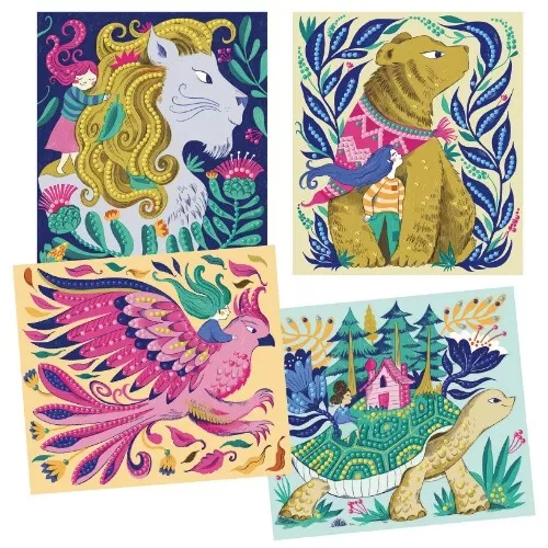 Met deze knutselset ‘Artistic Diams Mythical Creatures’ van het Franse merk Djeco maken kinderen prachtige schilderijen met decoratiesteentjes. Creatief speelgoed met een schitterend eindresultaat.