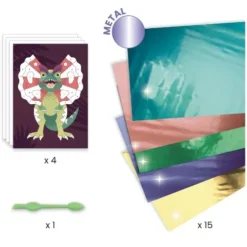 Een stoer, prehistorisch knutselpakket ‘Jurassic’ van het Franse merk Djeco om met metaalfolie de dinosaurussen tot leven te brengen.