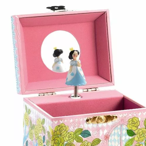 Wind het hendeltje achterop het doosje en dan klinken de zachte klanken van ‘De magische fluit’ van Wolfgang Amadeus Mozart terwijl de prinses ronddanst.