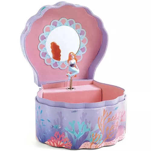 Een betoverend sieradendoosje ‘Sirène Enchantée’ van het Franse merk Djeco. Wanneer het muziekdoosje wordt geopend, draait de zeemeermin rond op de klanken van Invitation to the Dance van Carl Maria von Weber.