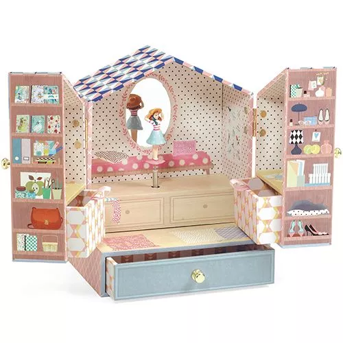 Een betoverend sieradendoosje ‘Tinou Shop’ van het Franse merk Djeco. Open de deuren van de winkel waar een draaiende Tinou je welkom heet en het liedje The Magic Flute van Wolfgang Amadeus Mozart klinkt.