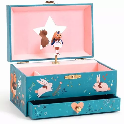 Een magisch sieradendoosje ‘Mélodie Magique’ uit de serie Little BIG Room van het Franse merk Djeco. Wanneer het muziekdoosje wordt geopend klinken de betoverende klanken van Mozarts Zauberflöte.