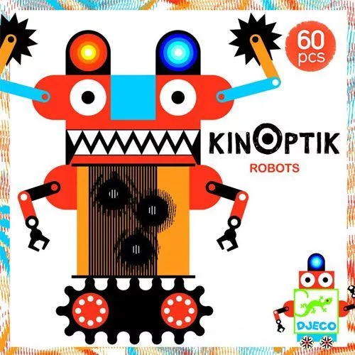 Kinoptik robots van het Franse merk Djeco is een leuke 60-delige set met drie spellen in één.