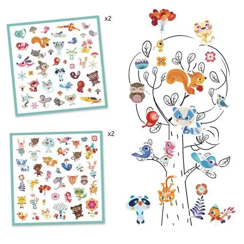 Vier velletjes met 160 lieflijke stickers ‘Petits Amis’ van het Franse merk Djeco met alle kleine dierenvriendjes. Leuk om eindeloos schriftjes, tekeningen en agenda’s mee te versieren. Of om een grappige tekening met stickers te maken met een dierenvriendenverhaaltje.
