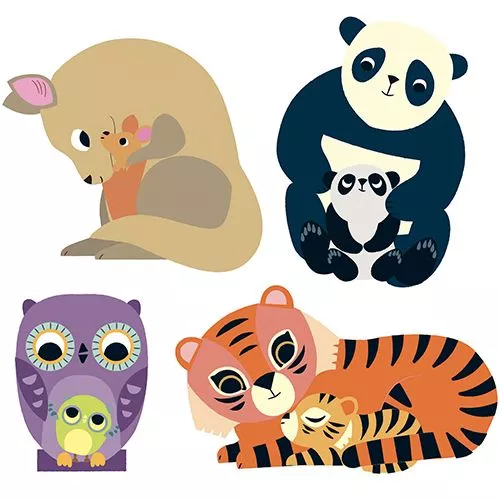 Een set van zes A4 vellen vol grote stickers ‘Big stickers for toddlers – mums and babies’ van het Franse merk Djeco. Peuterstickers met lieflijke dierenfamilies om eindeloos schriftjes en tekeningen mee te versieren.