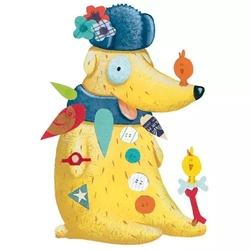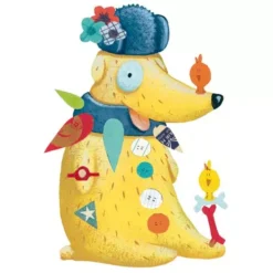 Een creatieve activiteit van het Franse merk Djeco. Beplak de verschillende dieren met bijvoorbeeld veren, haar en kledingstukken, zodat het ene dier nog gekker wordt dan het andere.