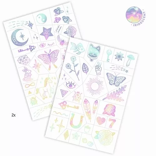 Leuke, verrassende kindertatoeages ‘Lucky Charms’ van het Franse merk Djeco voor een betoverend effect of als uitdeelcadeautje op een kinderfeest.