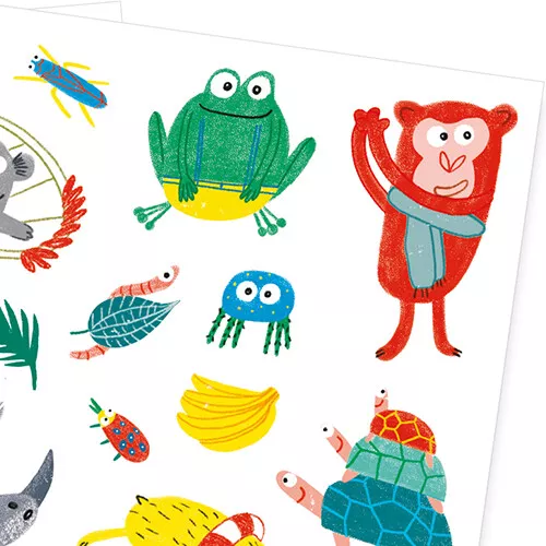 Vrolijke kindertattoos met dierensnoeten ‘Snouts’ van het Franse merk Djeco om de huid mee te versieren. De twee vellen bevatten plaktattoos van allerlei grappige, kleurrijke dieren.
