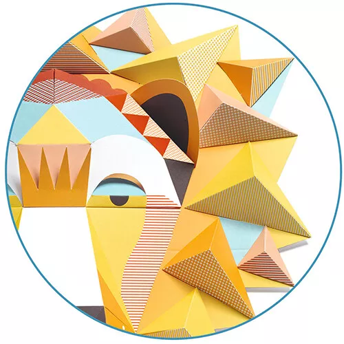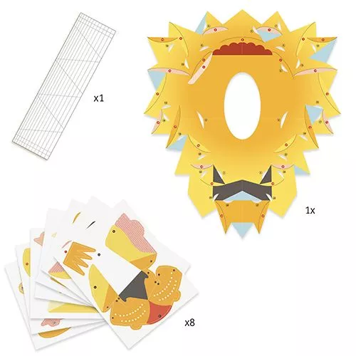 Een vouwset ‘3D Poster – The King’ van het Franse merk Djeco voor de origami-fan. De knutselset bevat een achtergrond in de de vorm van een leeuwenkop en voor gestanste vellen papier met de details van de kop. Wanneer de gevouwen onderdelen zijn opgeplakt ontstaat er een prachtige poster met 3D effect.