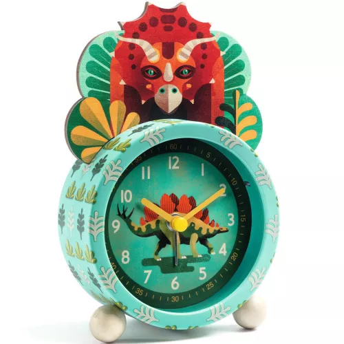 Een kinderwekker ‘Réveil Dinosaure’ uit de serie Little BIG room van het Franse merk Djeco. Deze dinowekker zorgt ervoor dat kinderen op tijd wakker zijn voor school of die ene belangrijke wedstrijd. Met urenwijzer, secondewijzer en een rijkelijk versierd houten frame.