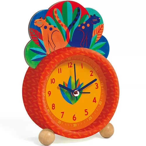 Een kinderwekker ‘Alarm Clock – Felines’ uit de serie Little BIG room van het Franse merk Djeco. Deze wekker in jungle thema zorgt ervoor dat kinderen op tijd wakker zijn voor school of die ene belangrijke wedstrijd. Met urenwijzer, secondewijzer en een rijkelijk versierd houten frame.