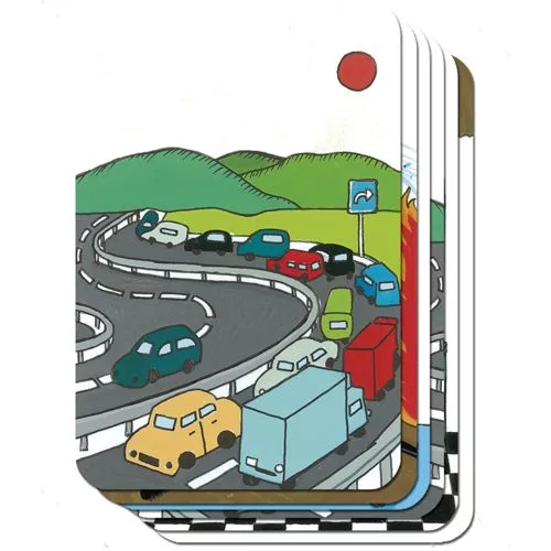 – De jongste speler wordt aangewezen als spelleider. Hij pakt de bovenste vier afbeeldingskaarten van het stapeltje en spreidt deze midden op tafel uit, met de plaatjes naar boven.